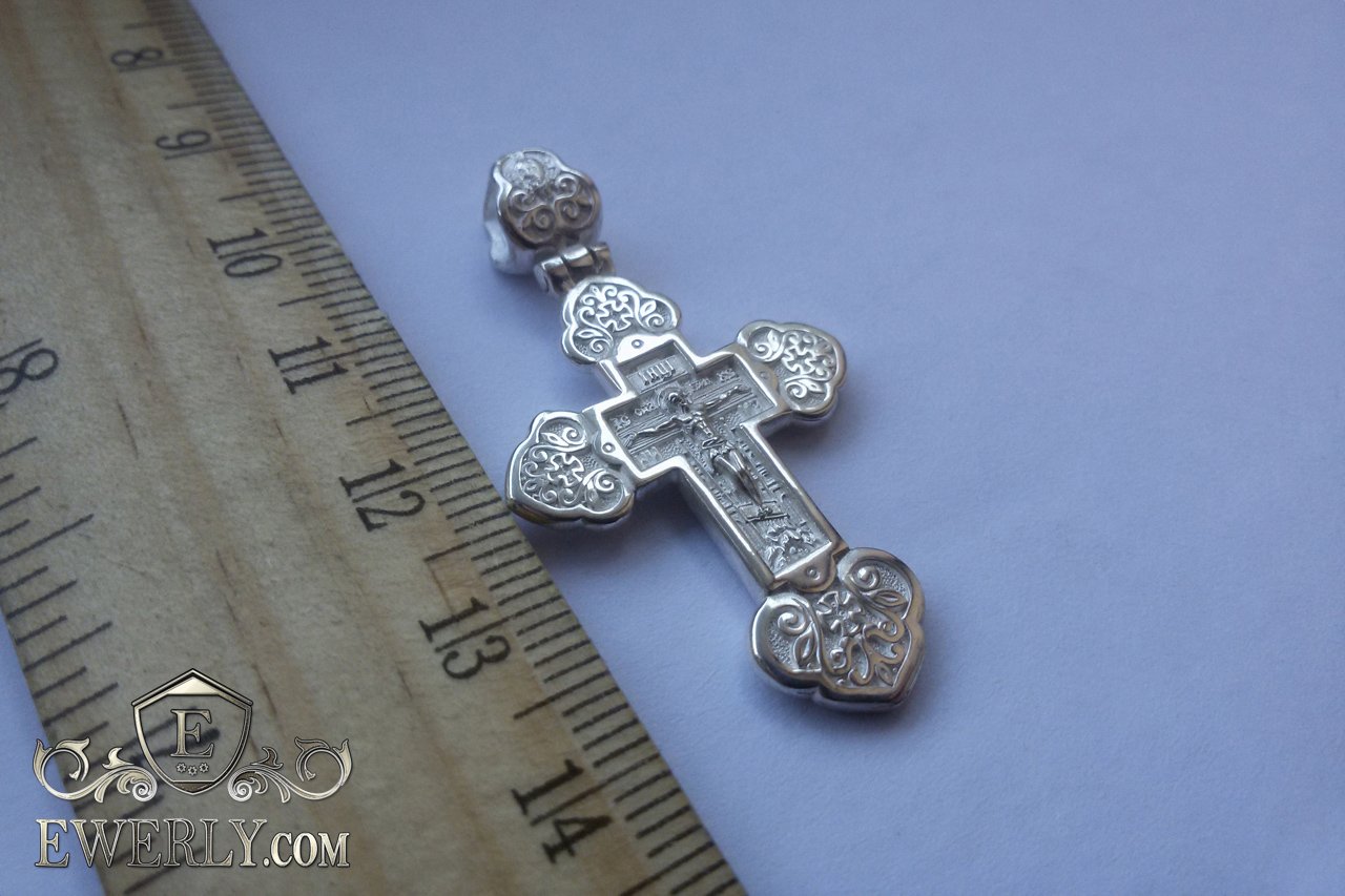 In the photo: The crucifixion of Christ. Archangel Michael. Silver orthodox cross. Length: 3.3 cm