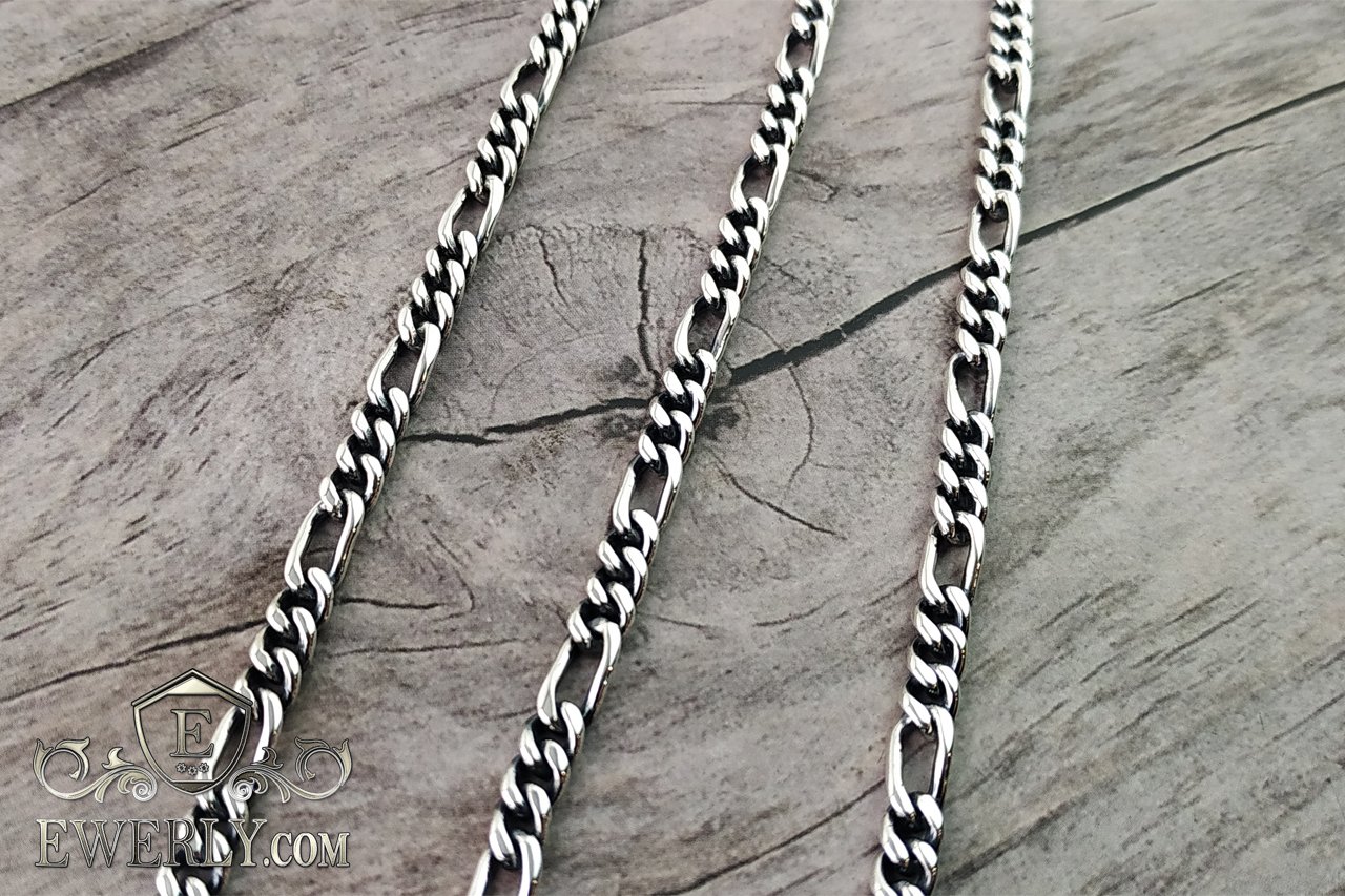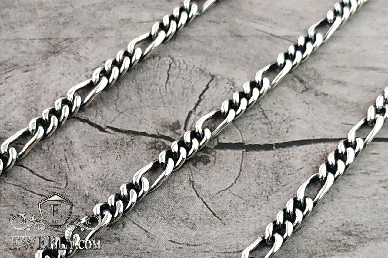 Полновесное плетение.Плетение «Фигаро» является по сути своей панцирным плетением (панцирем), но только с вытянутыми промежуточными звеньями. Также зачастую пользуется спросом у мужчин, но тем не менее исключительно мужским его тоже нельзя назвать, есть исключения.