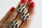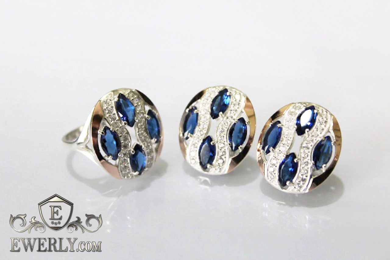 Женский комплект: серьги и кольцо из серебра с золотом и синими камнями