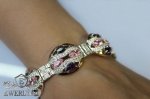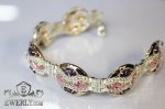 Полновесный браслет.Женский серебряный браслет с фианитами розового, фиолетового и белого цвета и со вставками золота.