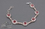 Полновесный браслет.Женский серебряный браслет со вставками золота и камнями (красными фианитами).