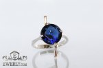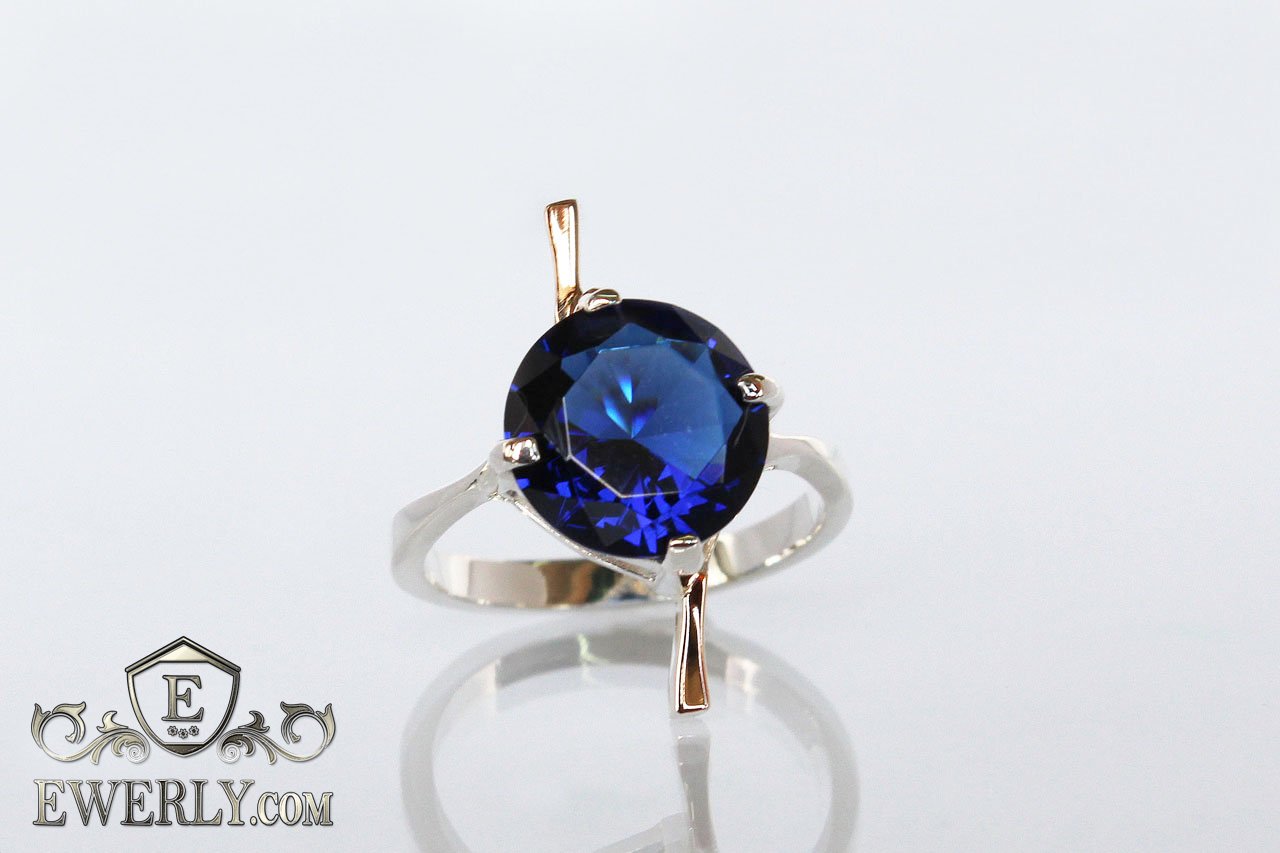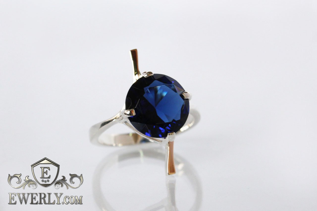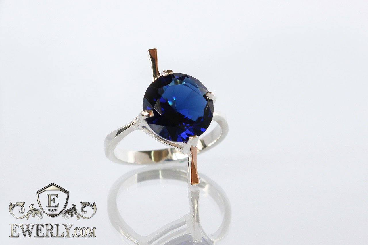 Женское серебряное кольцо 925 пробы с золотыми пластинами 375 пробы с синим фианитом.