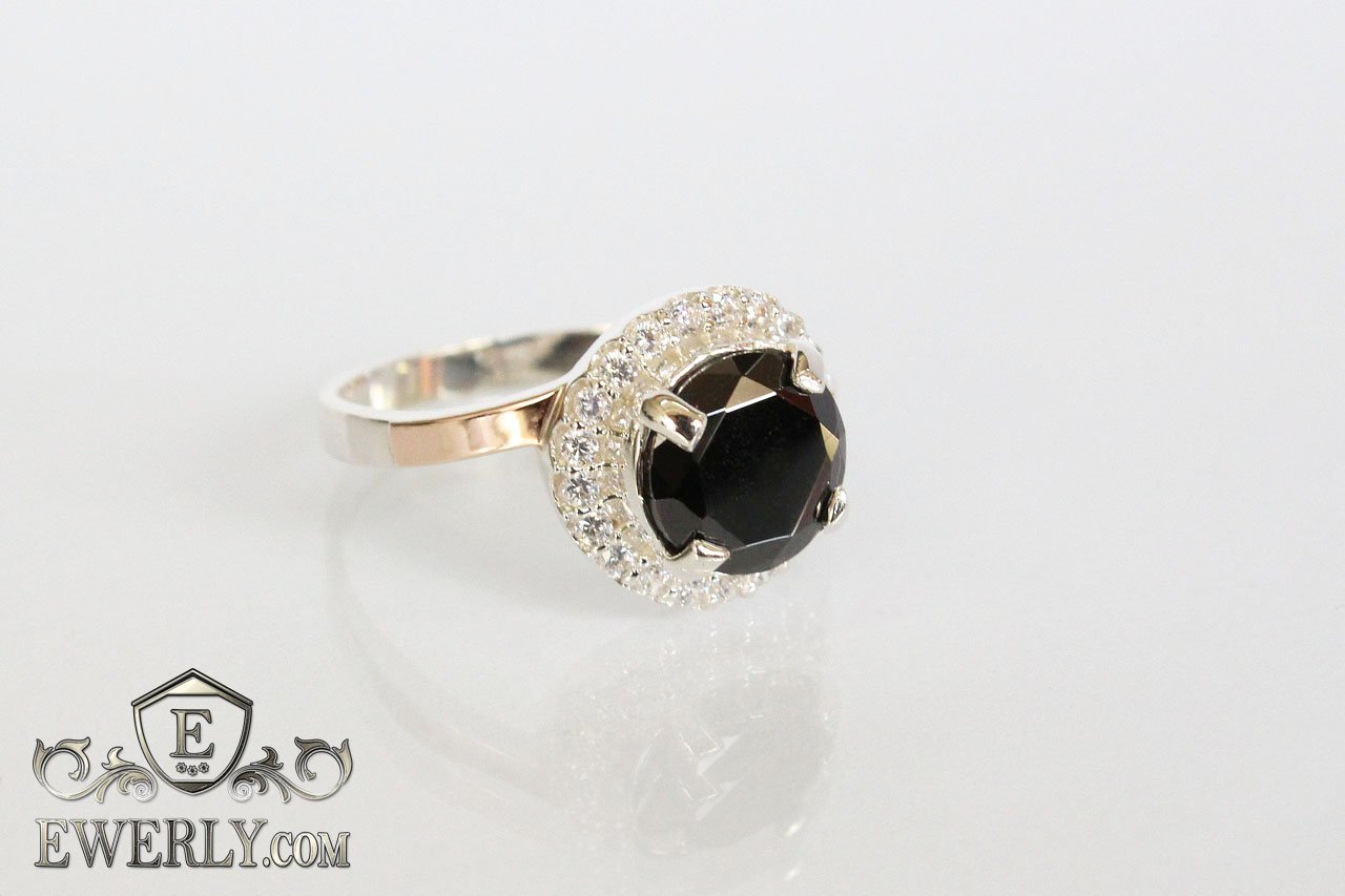 Серебряное кольцо с чёрным фианитом