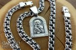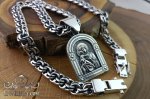Мужская серебряная цепь Бисмарк и православная иконка Владимирской Божьей Матери