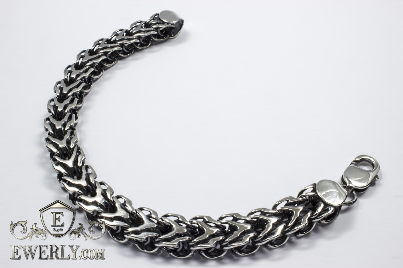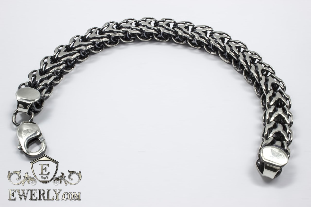 Толстый мужской серебряный браслет - авторское плетение «Аллигатор»