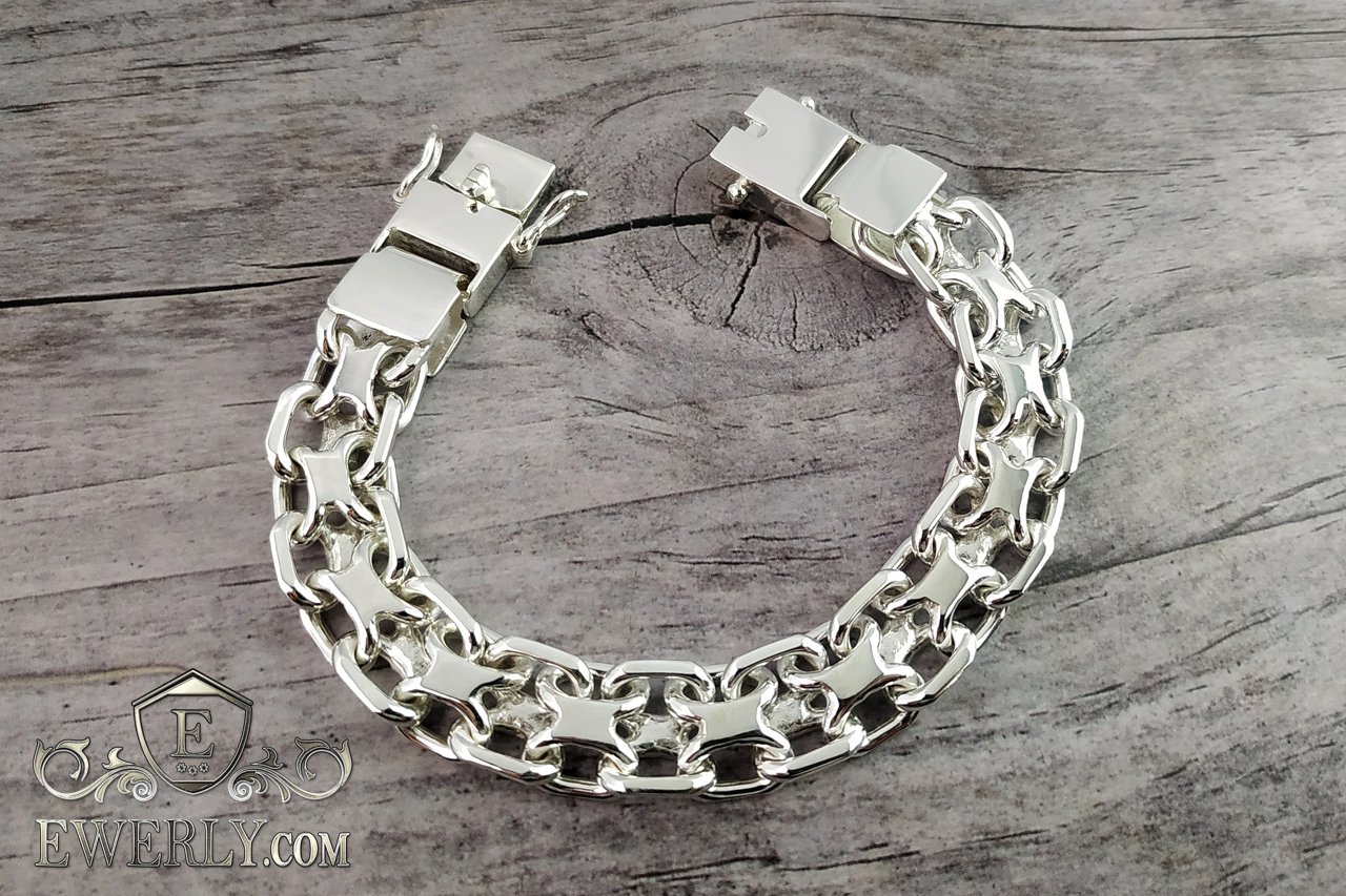 Серебряный браслет Фараон (двойной якорный) из серебра 925 пробы