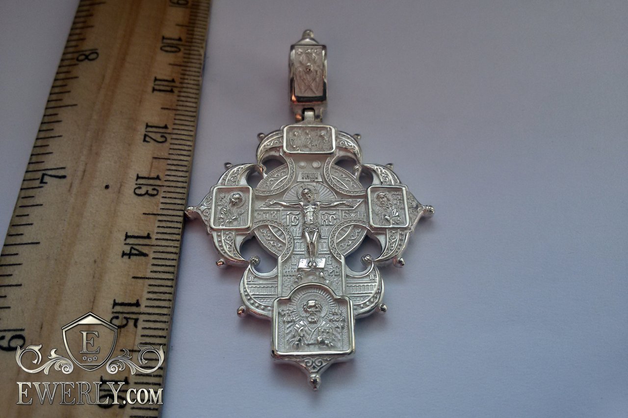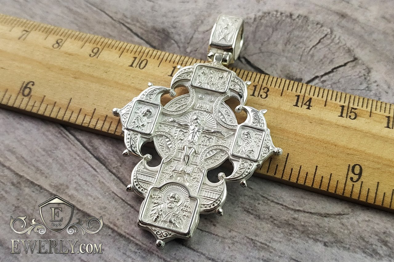На лицевой стороне креста изображено Распятие Иисуса Христа.