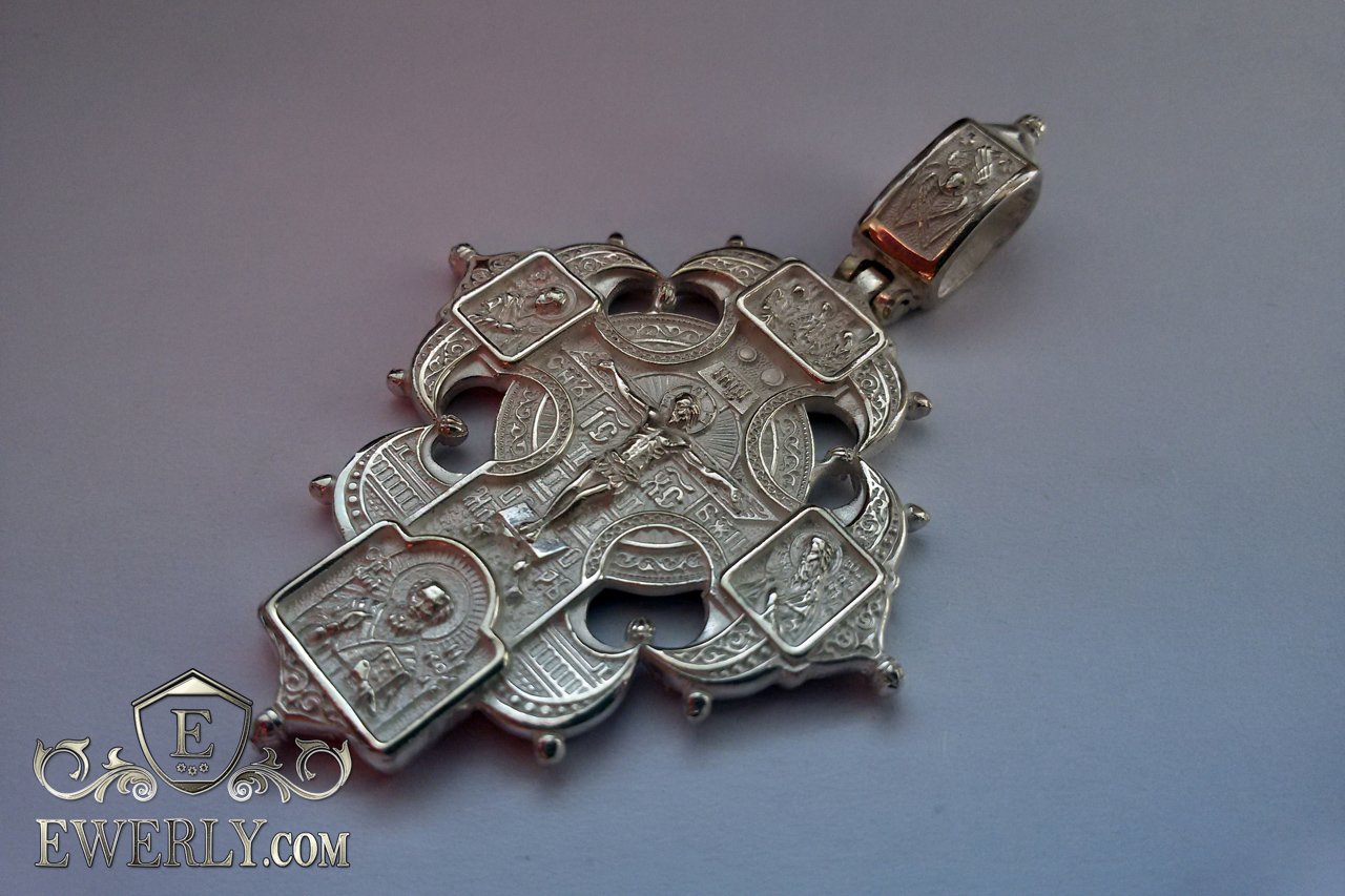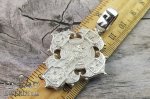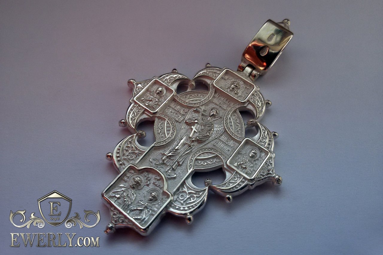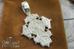 Изображено: Распятие Христово с предстоящими. Ангел Хранитель. Казанская икона Божией Матери. Святые покровители семьи.Длина: 4.2 см