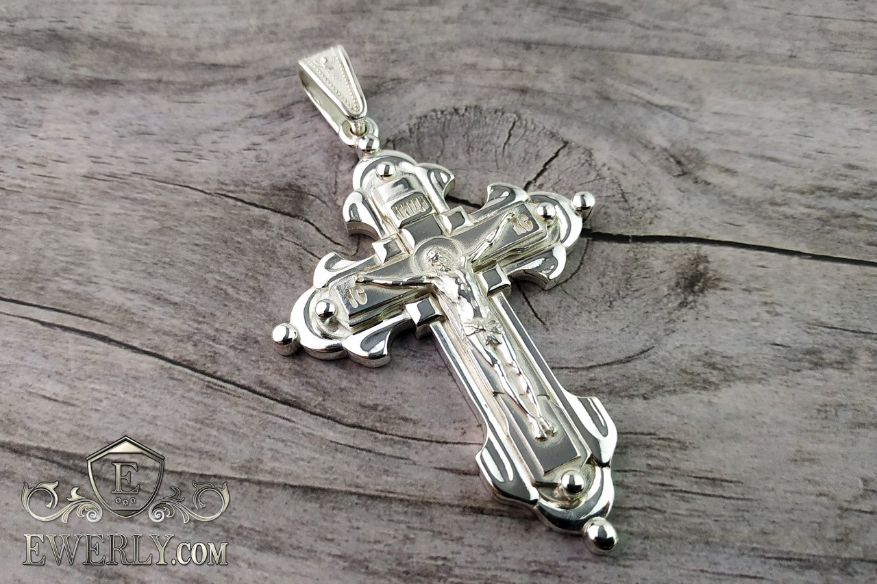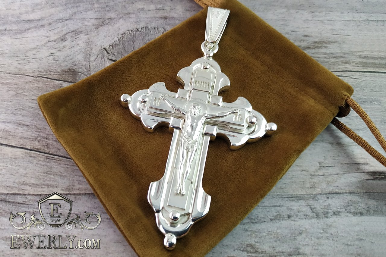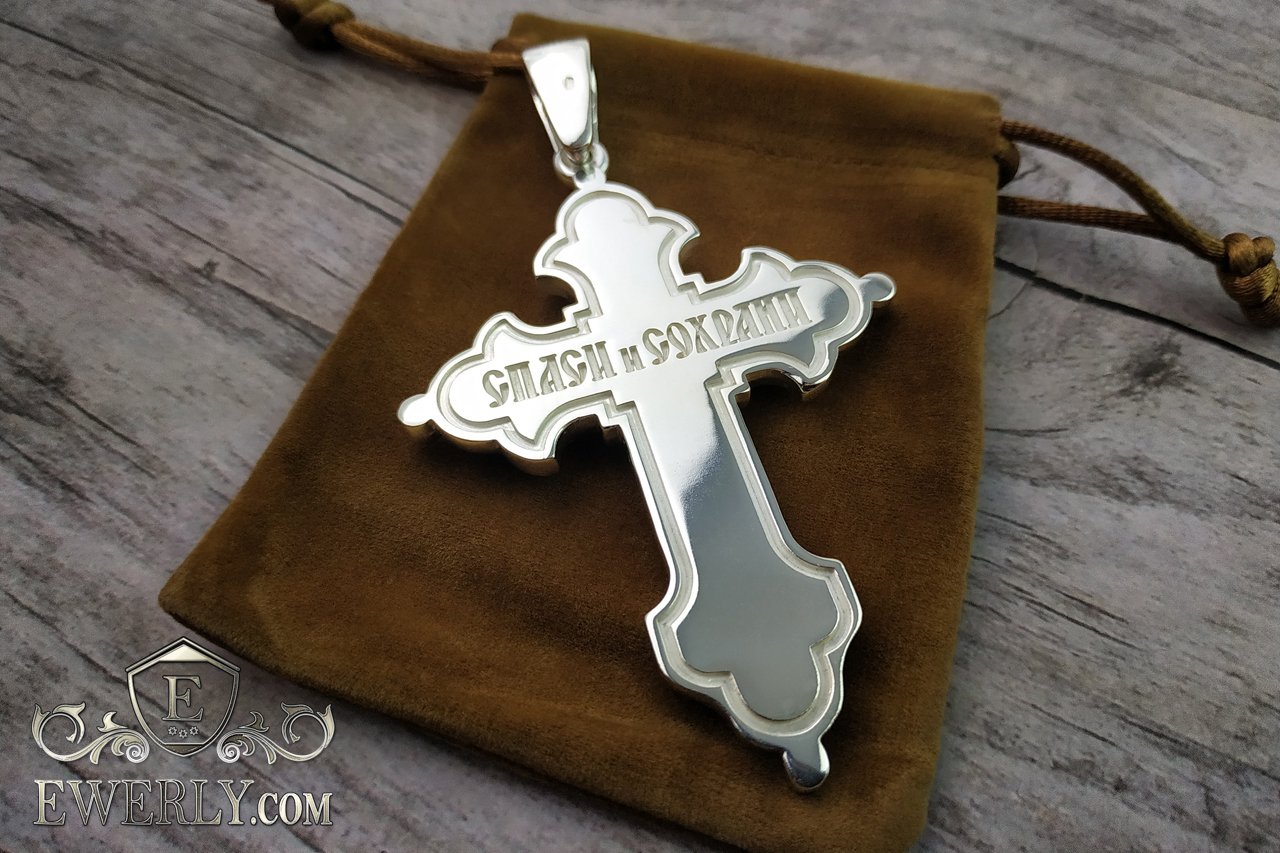 Огромный мужской нательный крест из серебра