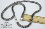 Так как это плетение само по себе достаточно объёмное и массивное, то минимальные возможные размеры также будут достаточно большими. Цепочка, изображённая на фотографиях текущей страницы, имеет по сути минимально возможную ширину (около 6мм), а также пропорции. Но длину при этих же пропорциях можно менять как в большую, так и в меньшую сторону, отчего соответственно измениться масса и стоимость.