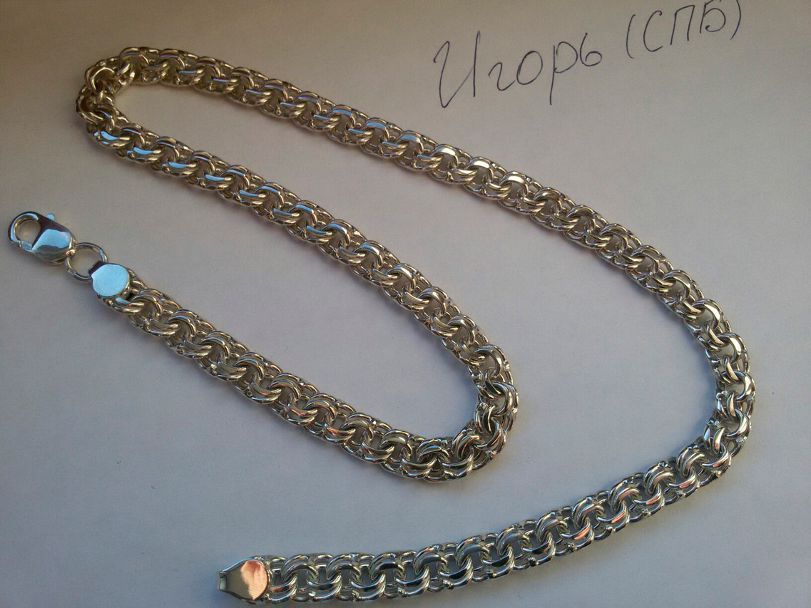 Полновесная цепочка. Данное плетение знакомо практически всем людям, когда-либо интересовавшимся ювелирными украшениями, в частности цепочками и браслетами. Любой ювелирный магазин переполнен изделиями из плетения «Бисмарк». Более того каждому ювелиру известно, что множество других плетений создаются также на основе «Бисмарка». Поэтому, как говорится, без него никуда, оно не только весьма популярно, но и универсально в смысле изготовления большого количества плетений со взятием его в качестве основы.