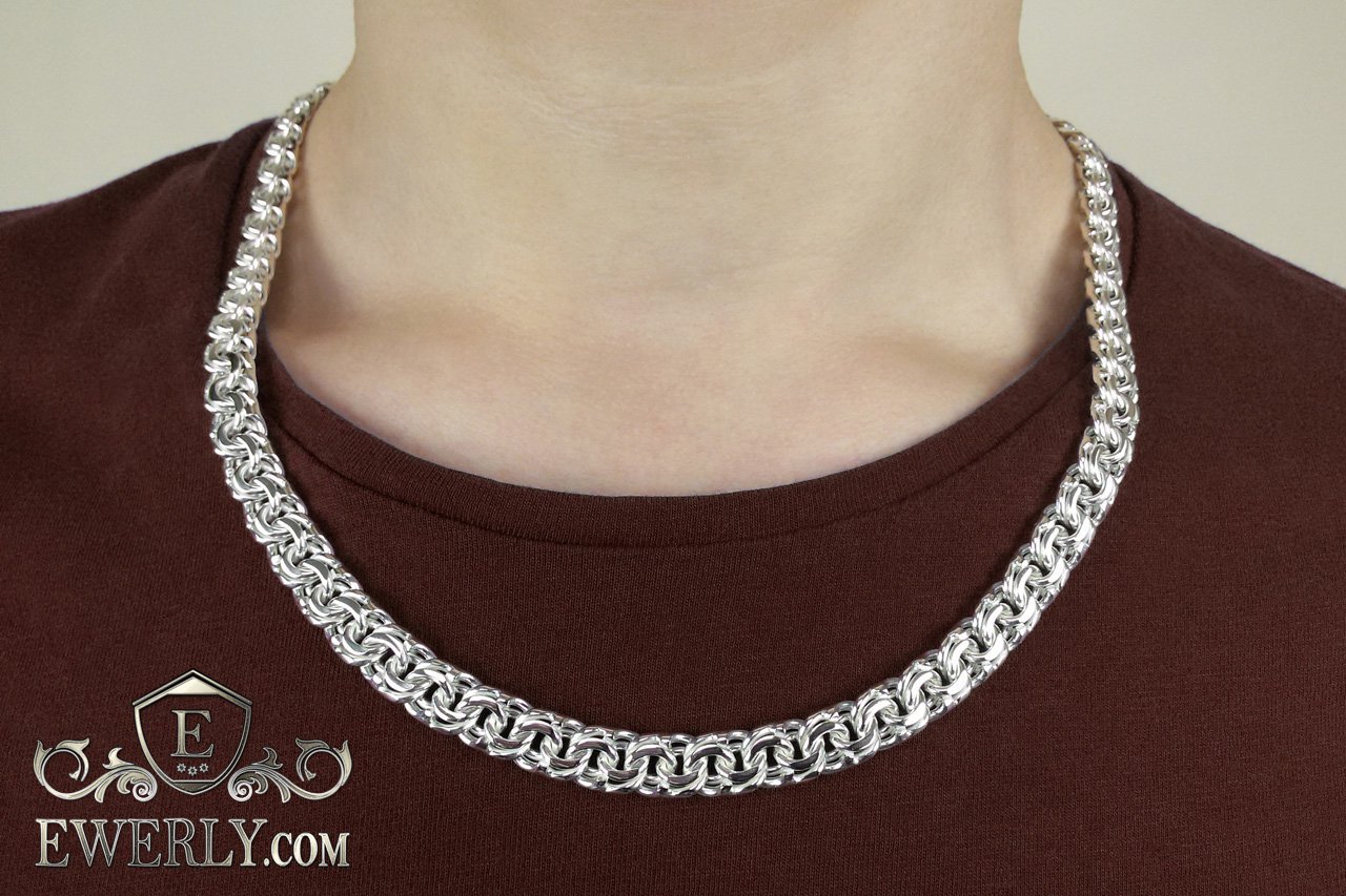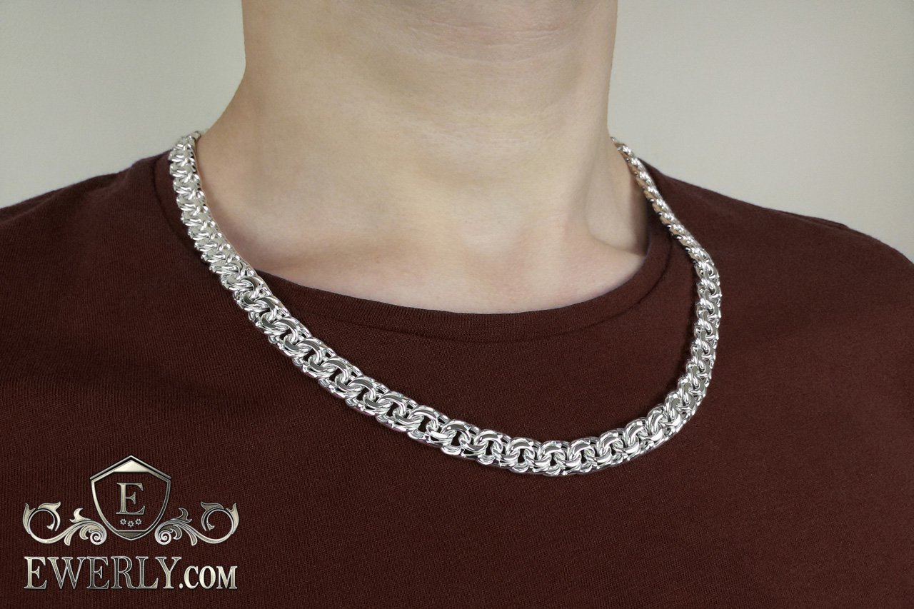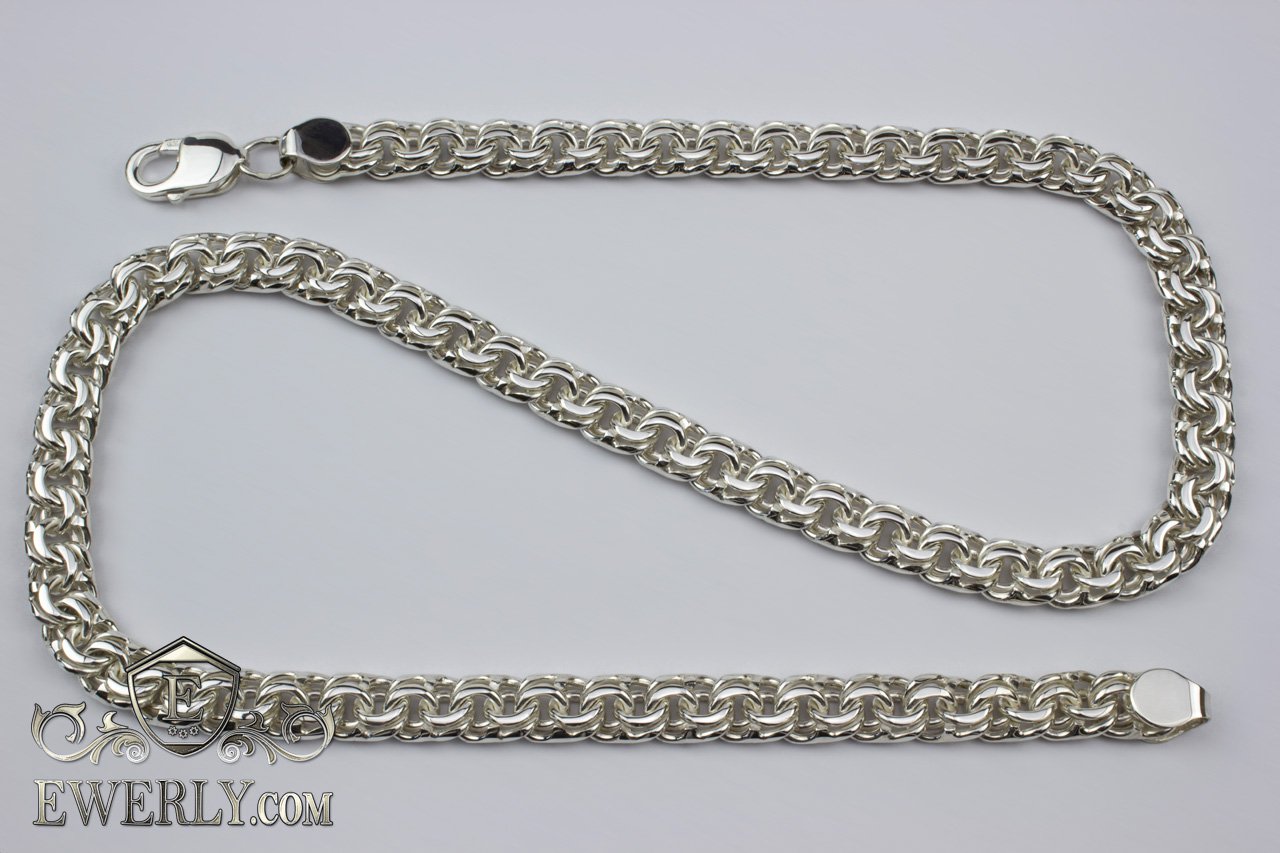 Мужская серебряная цепь 90 грамм - плетение цепочки Бисмарк