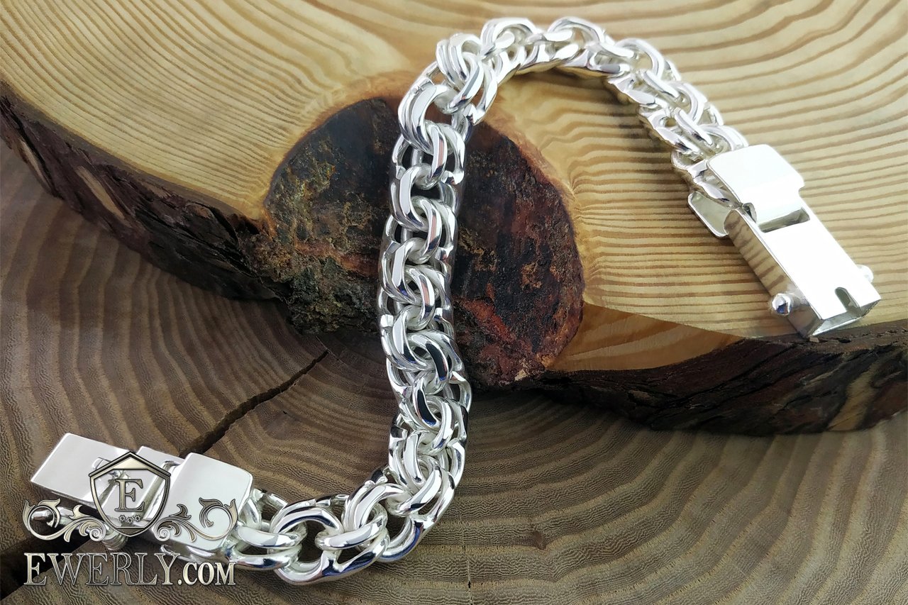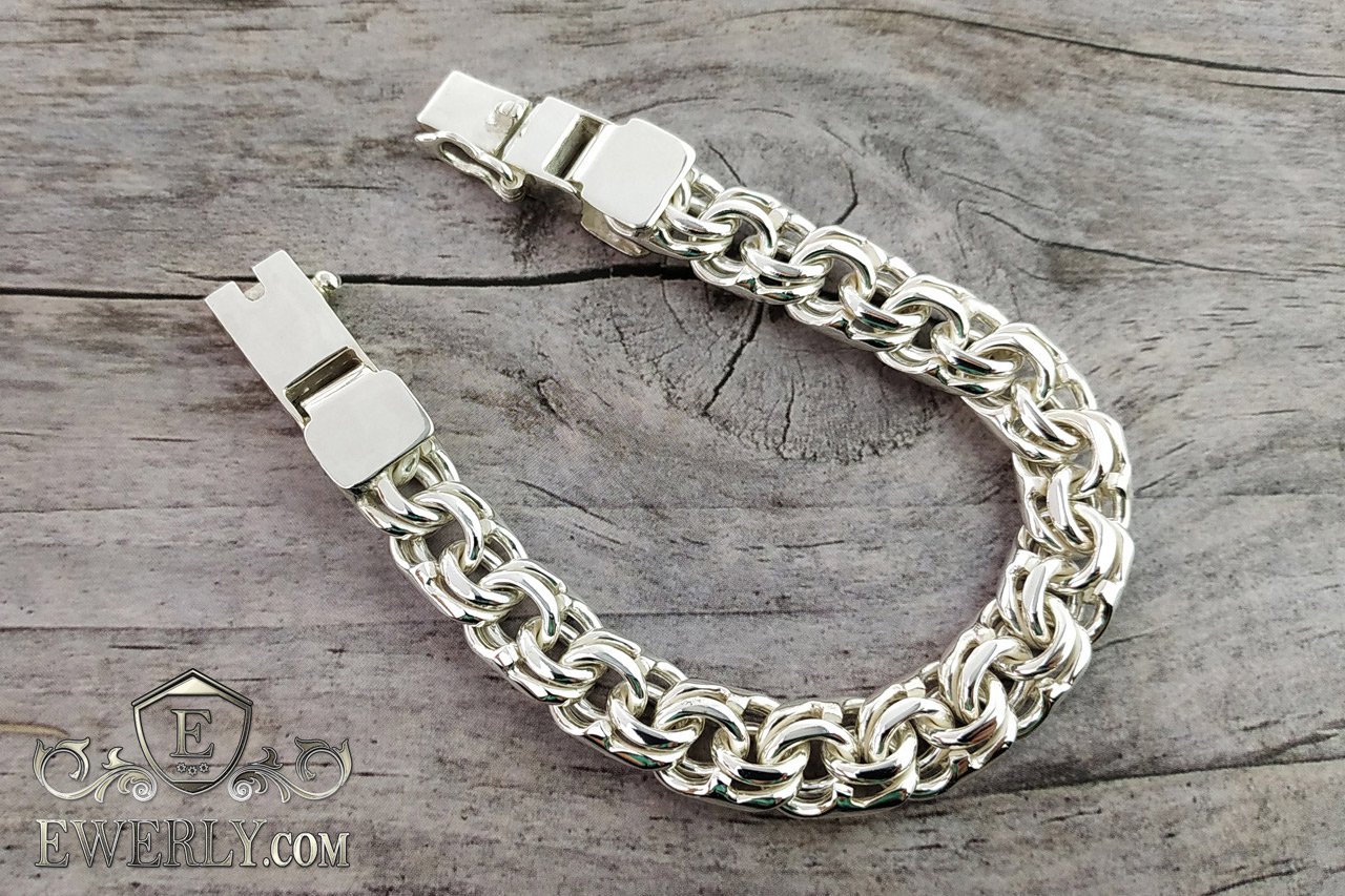 Полновесный браслет. На данной странице показан массивный серебряный браслет плетения Бисмарк на руку с замком «Коробочка» с одним фиксатором, по желанию возможно установить два фиксатора или другой замок, а также в целом изменить другие параметры браслета: длину, ширину, массу.