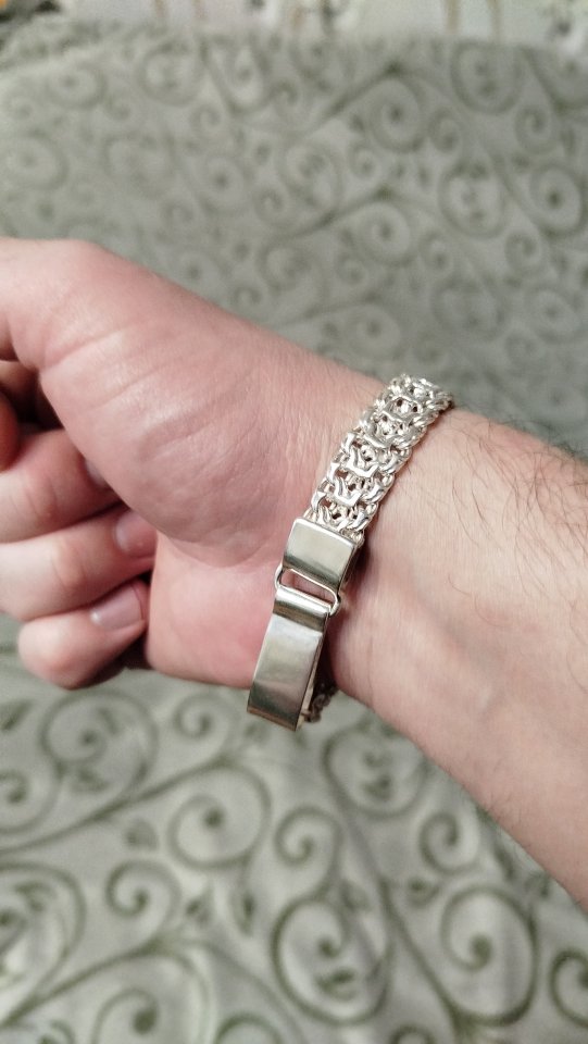 Заказал браслет Рамзес(Масса: 35,95 г Ширина: 8,85 мм Длина: 25 см Материал: Серебро 925 ̊ Покрытие: Чернение Замок: Карабин (пластина) ) и цепочку такого же плетения(Масса: 54,85 г Ширина: 6,87 мм