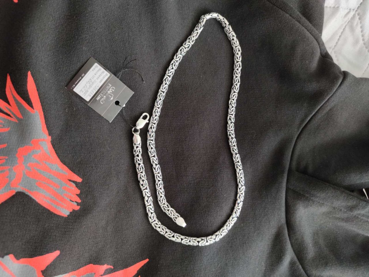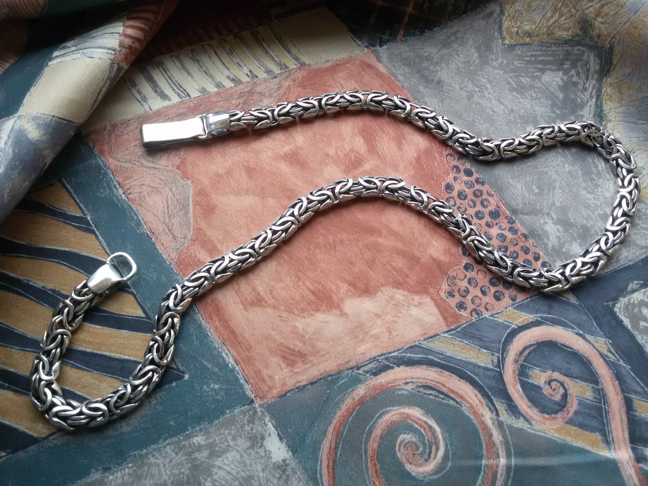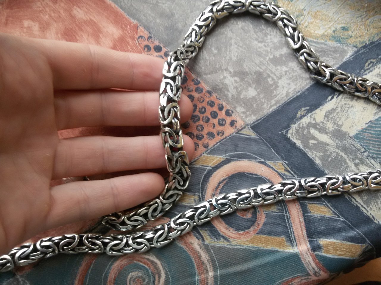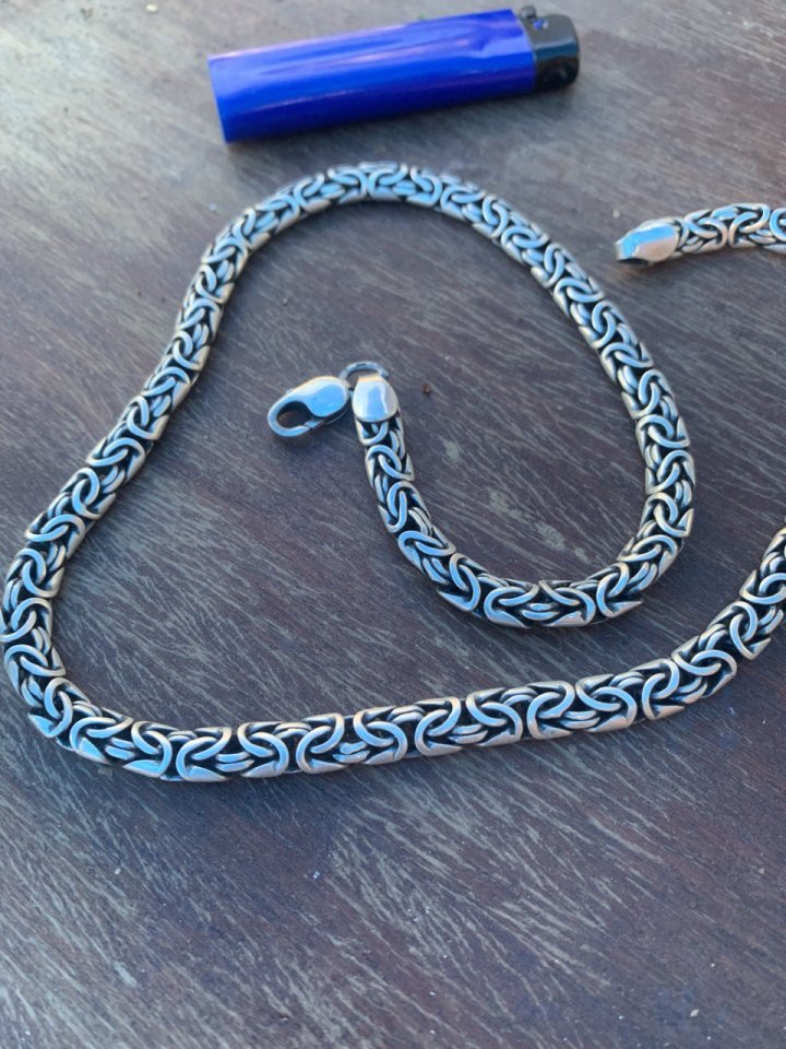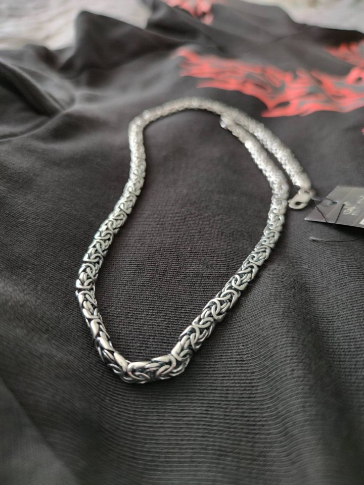 Сейгодня получил долгожданную цепочку лисий хвост - это просто пушка-бомба - всё как и представлял себе (раньше не видел подобное творение в живую :)). Всё в срок - ровно 8 рабочих дней как и обещали, доставка тоже - менее суток с момента информированя о готовности и финальной стоимости и весе изделия. Очень помогла консультация перед заказом определиться с длиной и застежкой. Сервису ставлю 10 из 10. Никогда не было такого плана цепи, так как в магазинах и найти то сложно, то не привычен вес. По качеству звеньев и в общем всего изделия ставлю также 10 из 10, даже сказал бы 10+ так как это ручная работа, а не машинка, что тоже надо понимать и если есть какое то маленькое вкрапление, то это нормально, но у меня и их нет, все чисто и гладко. Но вес есть вес - 66 грамм, чувствуется...начинаю уже привыкать. 101% буду еще заказывать, и жду интересные подвески и кольца в скандинавском стиле, хочу заказывать именно тут.