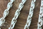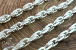 Полновесное плетение. Данное плетение представляет из себя якорное плетение из серебра с гранями, где на каждом втором соединительном звене добавлено ещё одно обтекающее дополнительное звено.