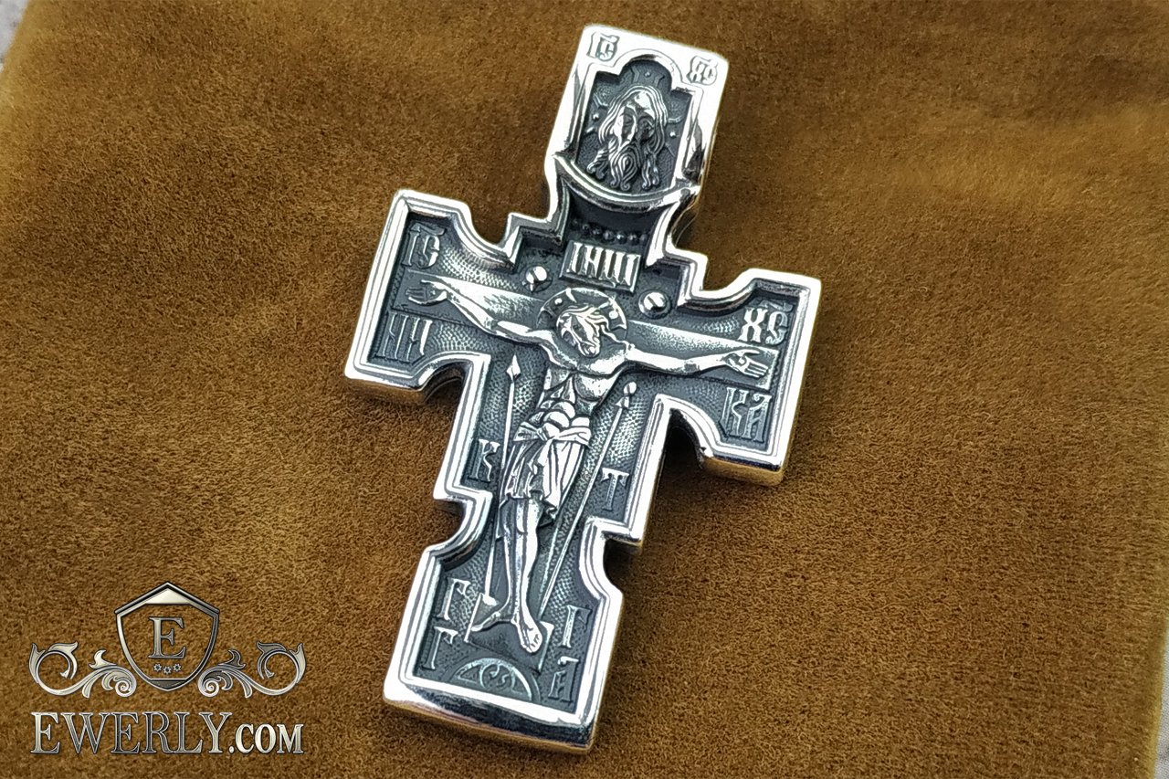 Нательный крест строгих монументальных форм собрал в себе образы, наиболее почитаемые за свою оградительную силу.