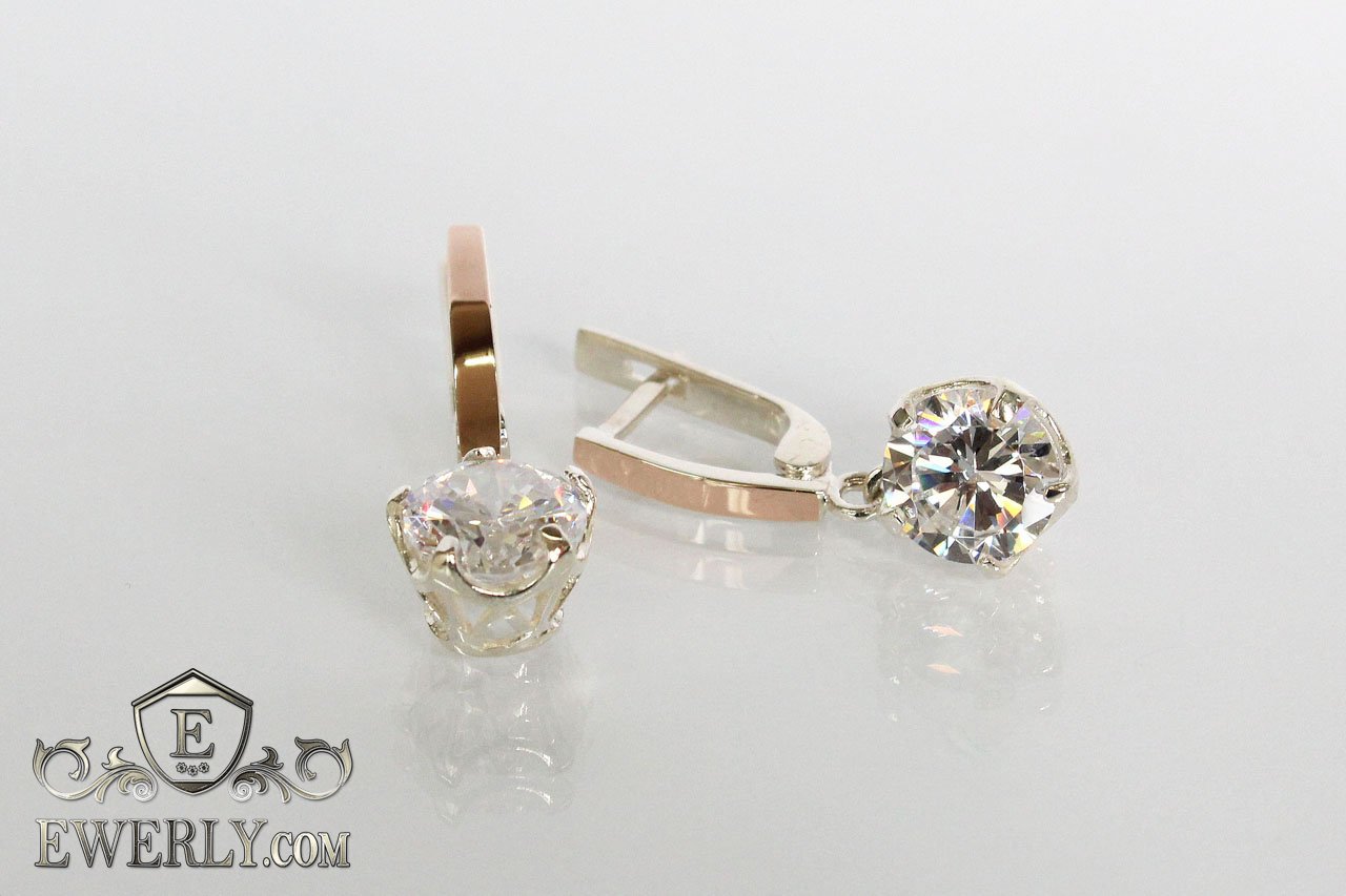 Женские серёжки из серебра с белыми камнями (золотые вставки)