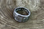 Авторское мужское родированное серебряное кольцо без камней со славянскими символами.