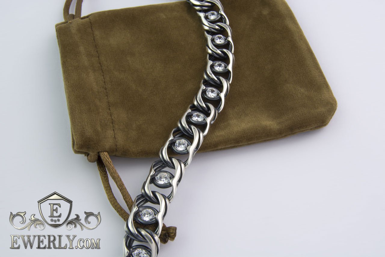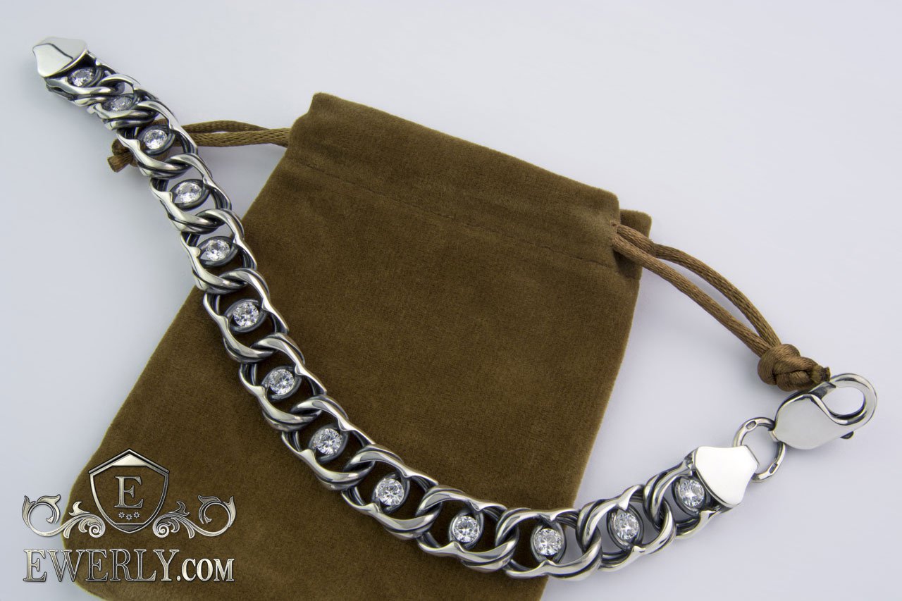 Браслет серебряный с камнями - Арабский бисмарк с фианитами
