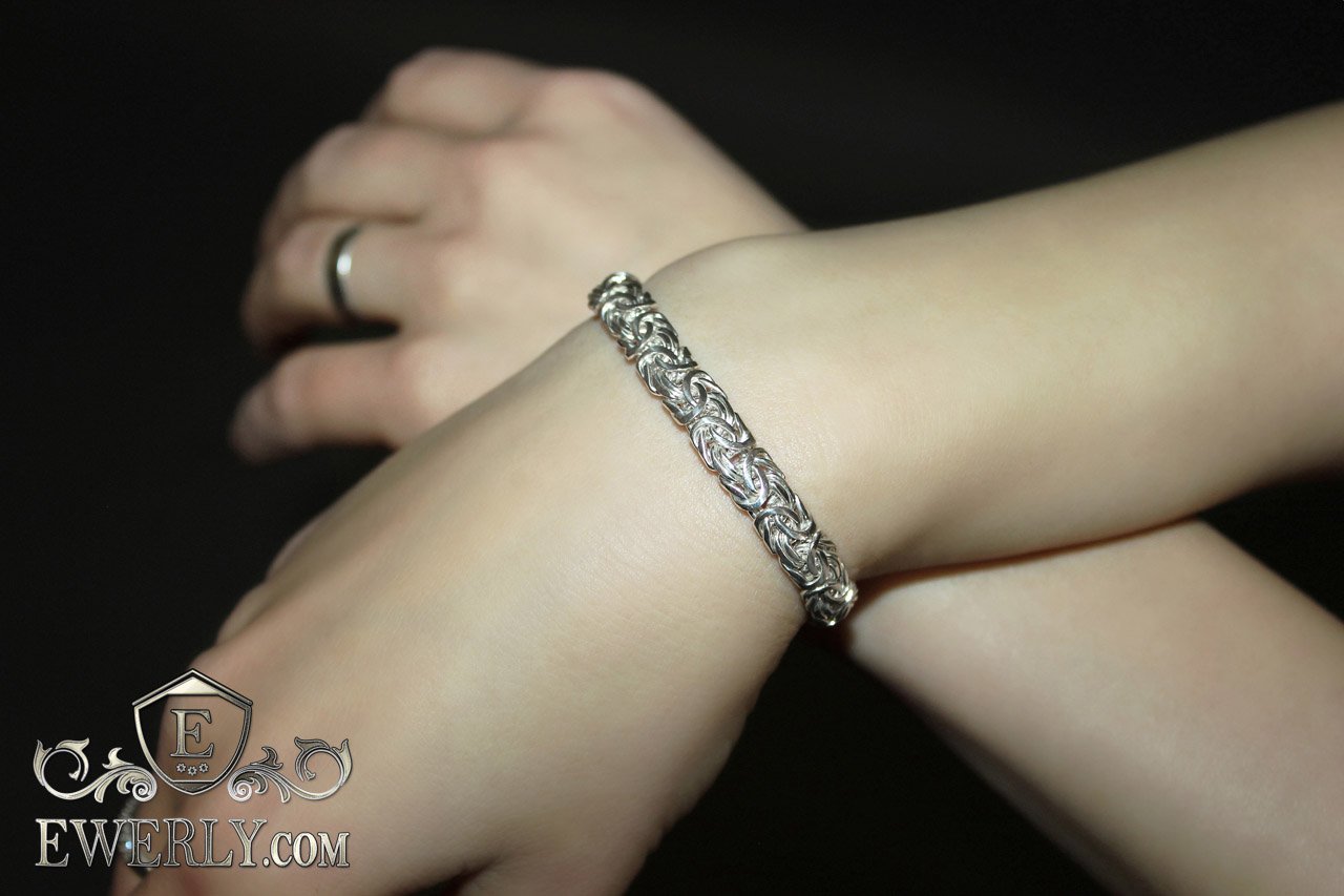 Полновесный серебряный браслет на руку. Данное плетение достаточно трудоёмкое в исполнении, и большинство ювелиров не обладают достаточным уровнем навыков в изготовлении, чтобы достичь высокого качества украшений, не говоря уже о том, чтобы просто изготовить. На текущий момент качество наших работ из этого плетения существенно превосходит большинство других производителей.