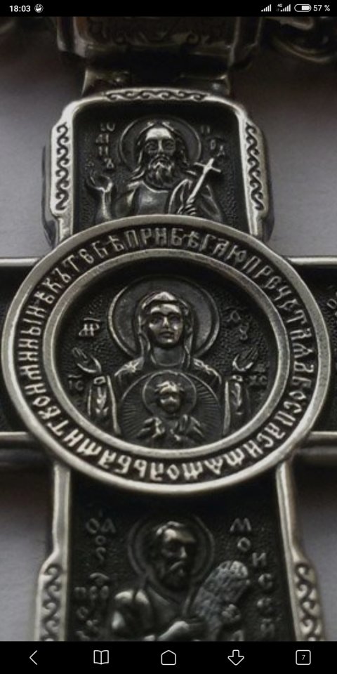 Оборот по центру украшает икона Божией Матери «Знамение». Вокруг Ее образа — молитва: «Ныне к Тебе прибегаю, Пресвятая Дева, спаси мя мольбами Твоими». Икона «Знамение» написана по пророчеству пророка Исайи, предрекшего, что Господь Иисус Христос родится от Девы. Поэтому этот образ часто изображают в окружении пророков.